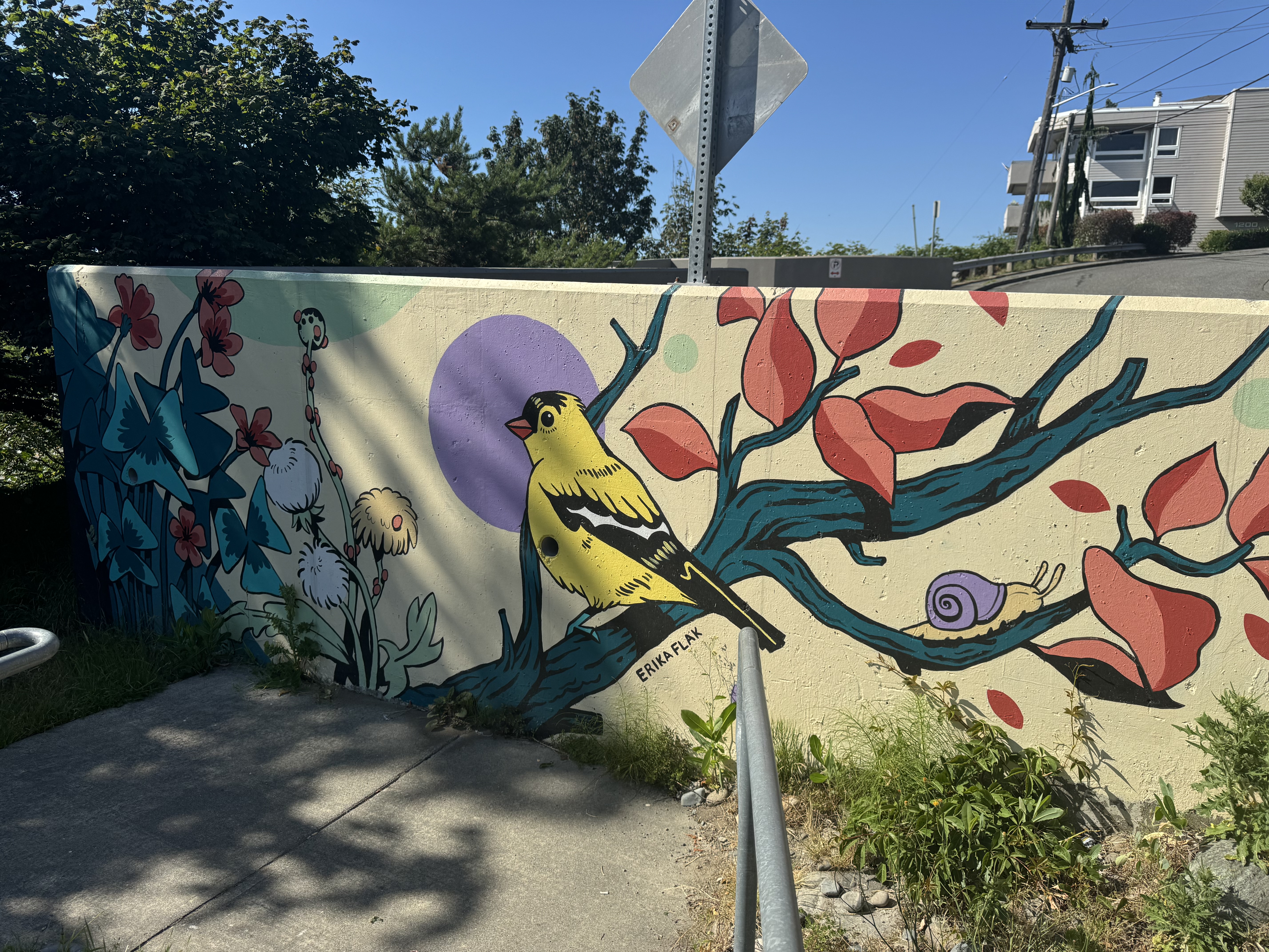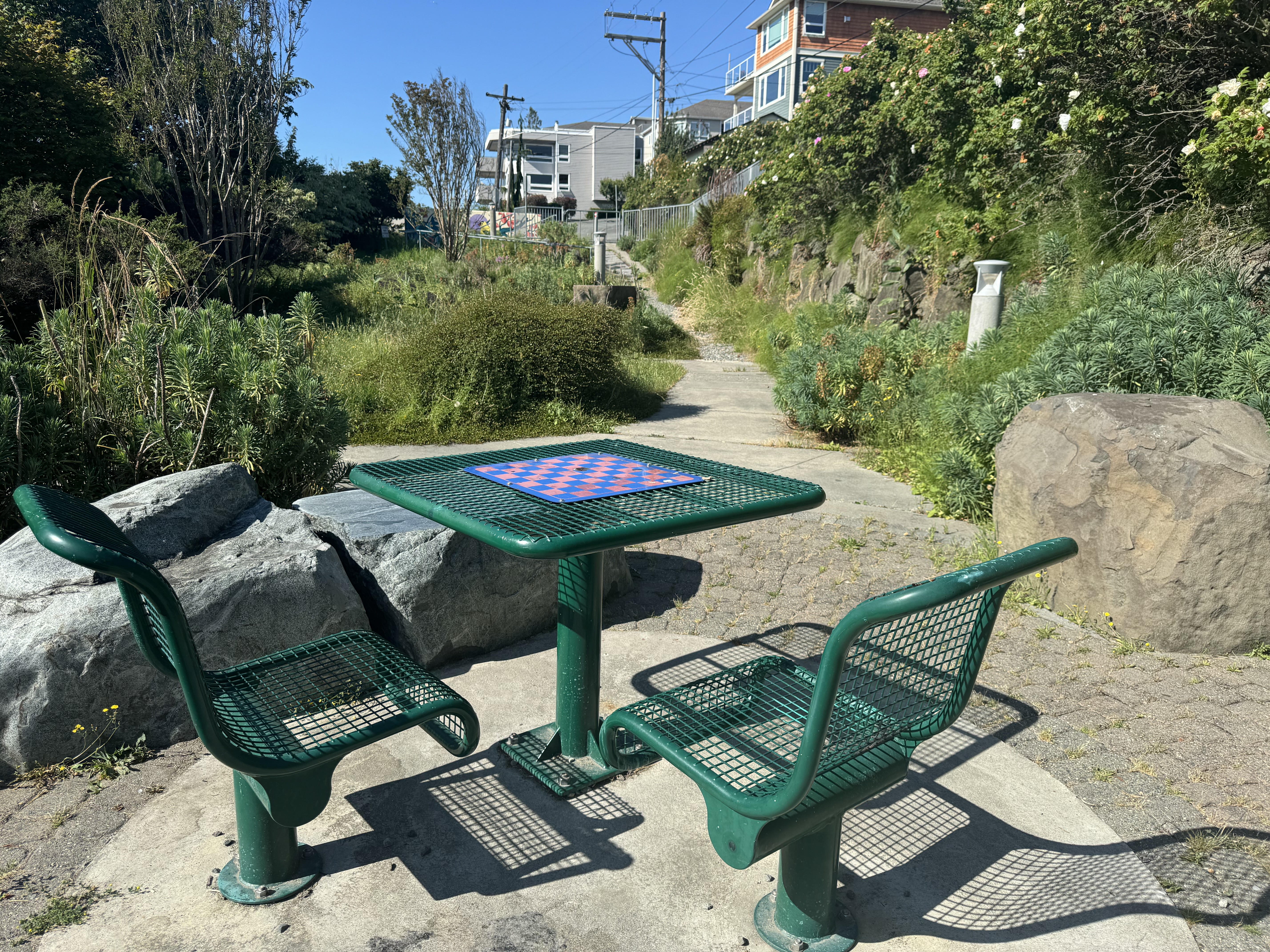 This park is narrow and also a little hard to find at the bottom of a residential neighborhood. Not many amenities here but has a pleasant walking path, with a picnic table and a mural. Downside is it’s right next to Marine View Dr, so you get some traffic noise.