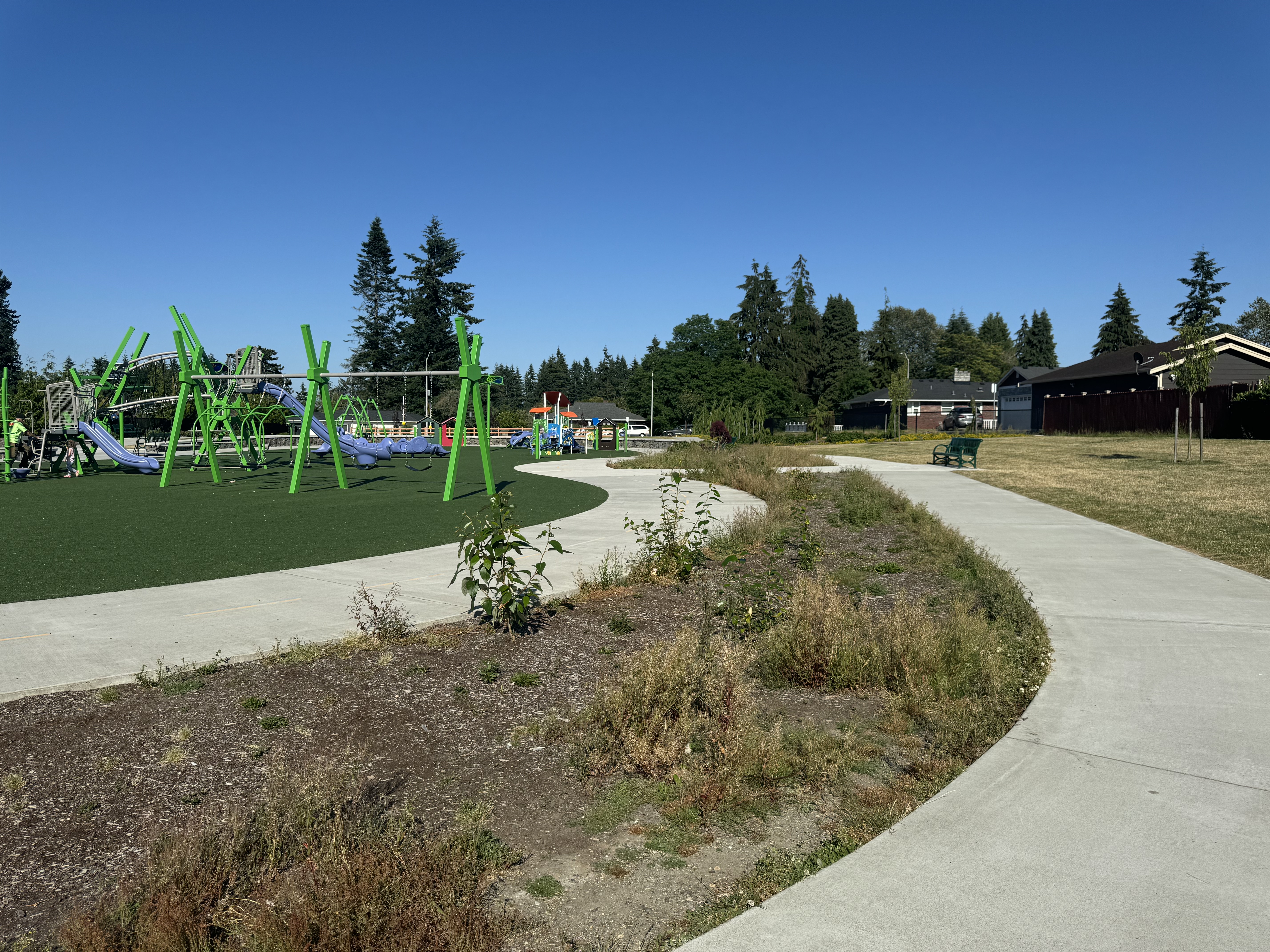 This one gets an A from me because of its extensive workout equipment which is unique in the Everett parks system. It also has a very nice walking trail around it. Nice spot to visit for some strength training and cardio!