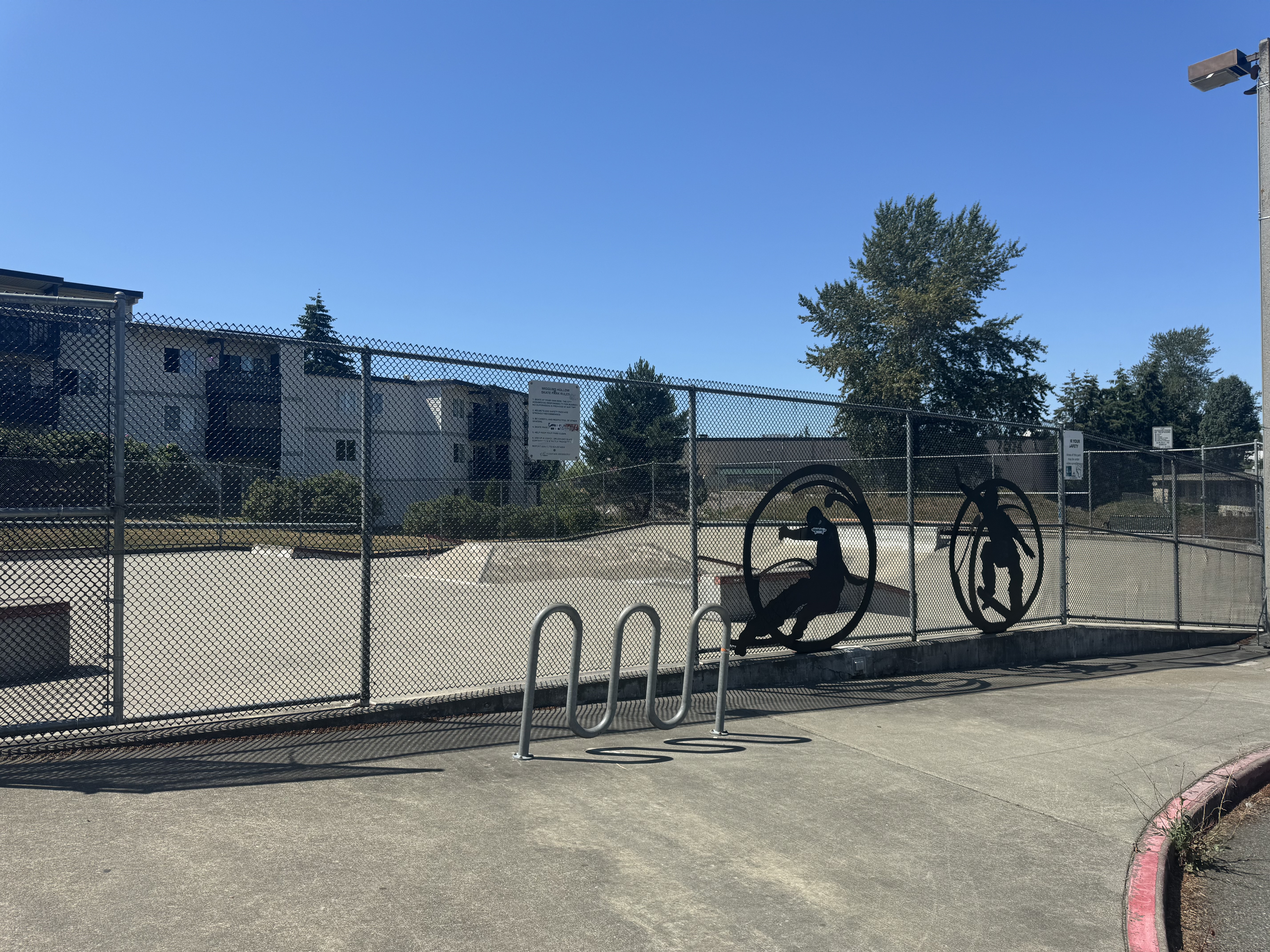 Big grassy area, and also a skate park. There’s also a (not-pictured) statue of a skateboard. The skate park is unique, I think just this and Walter E Hall have them. This is overall a very solid park.