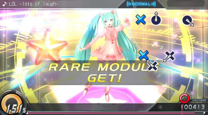 If you clear the chance time section of a song, you are granted a random module. And the modules, which are normally cosmetic now serve functional purposes in area quest mode. And by no means are you guaranteed a new module every time. You’ll find once you get a few in your library you’ll frequently get the same modules again, and this is extremely frustrating if you want to go for 100% module completion of modules. In past games you were able to buy modules at will from the shop.